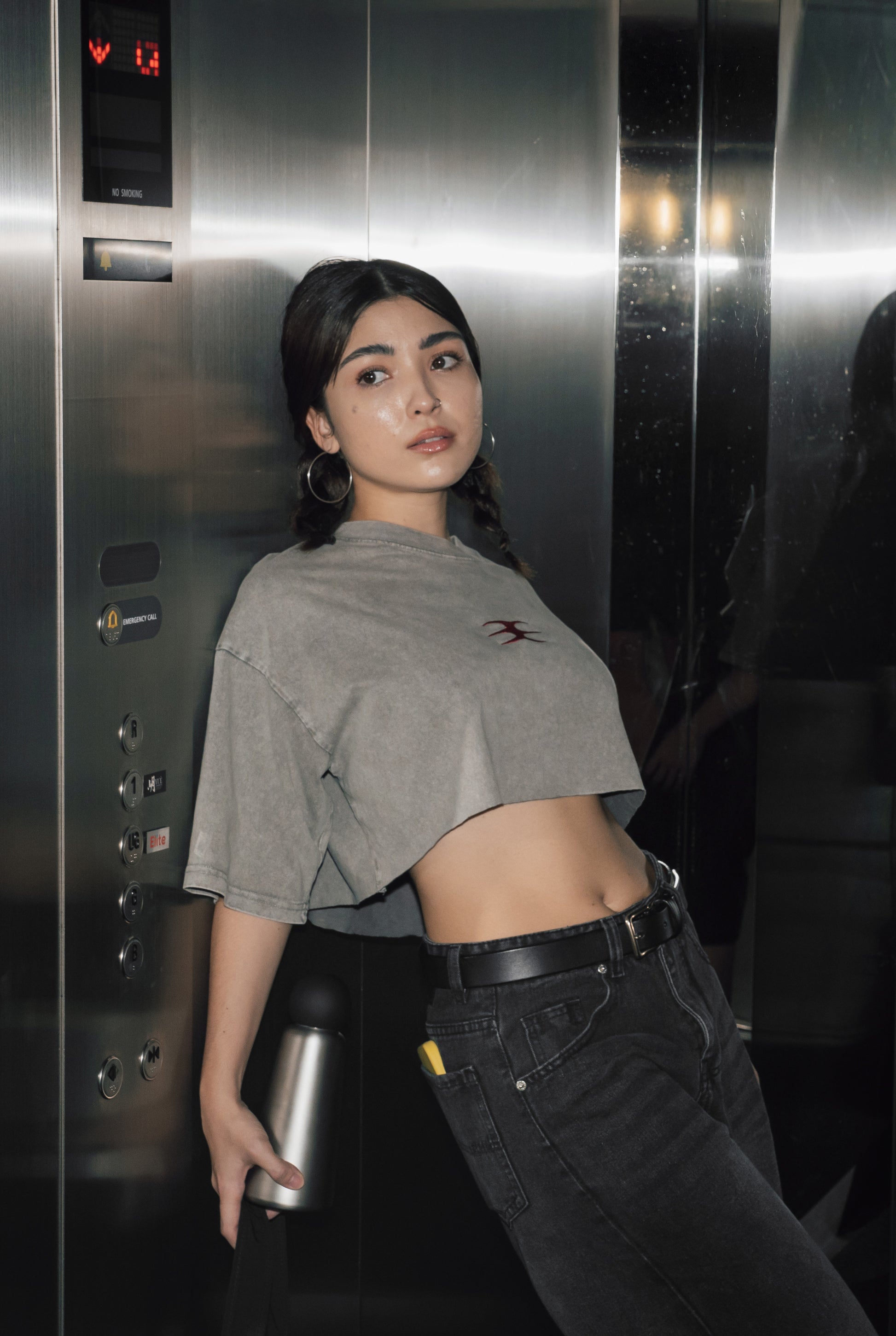M (Crop): Shoulder 56.5cm, Sleeve length 22.5cm, Bust 57.5cm, Hem 58.5cm, Length 41.5cm