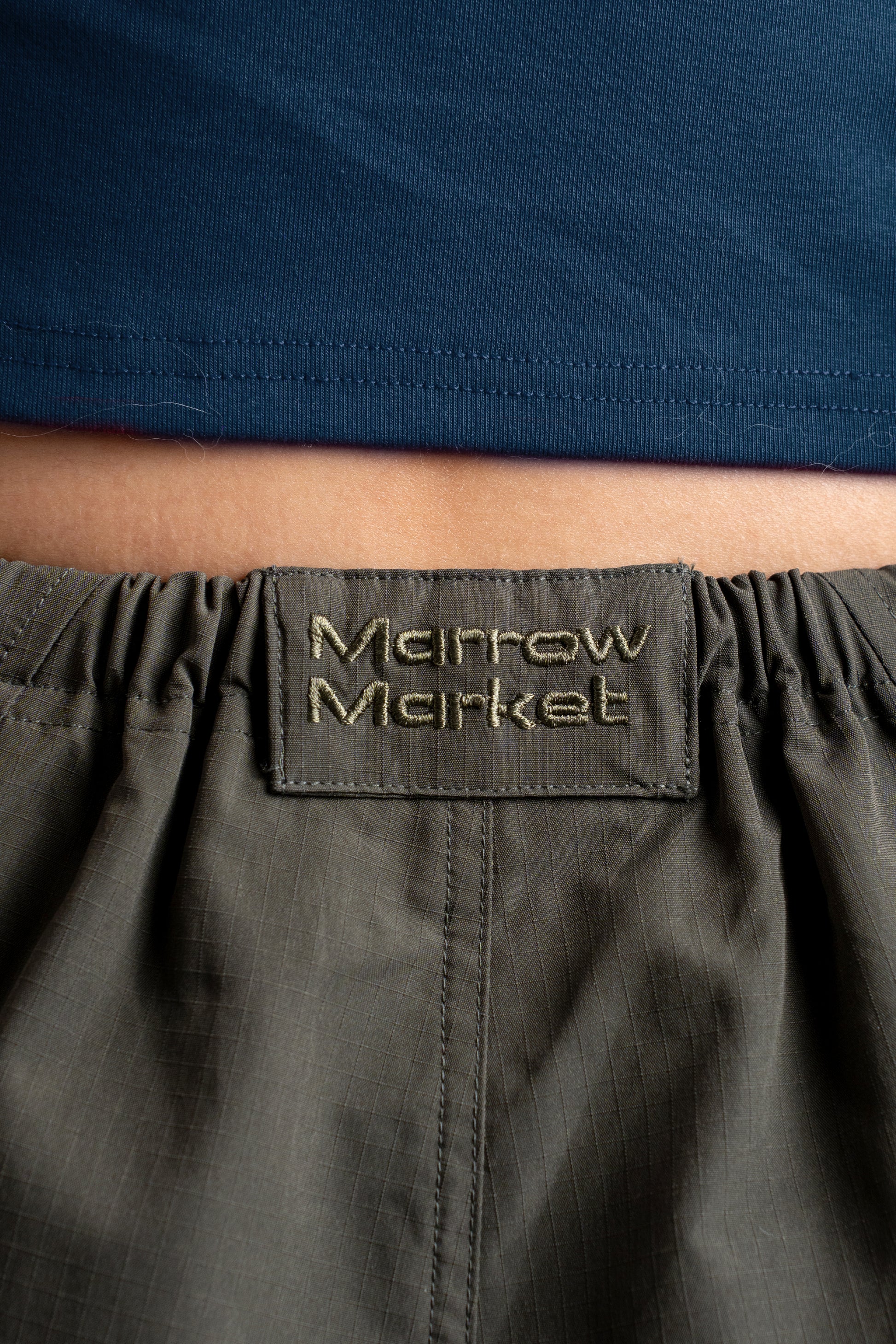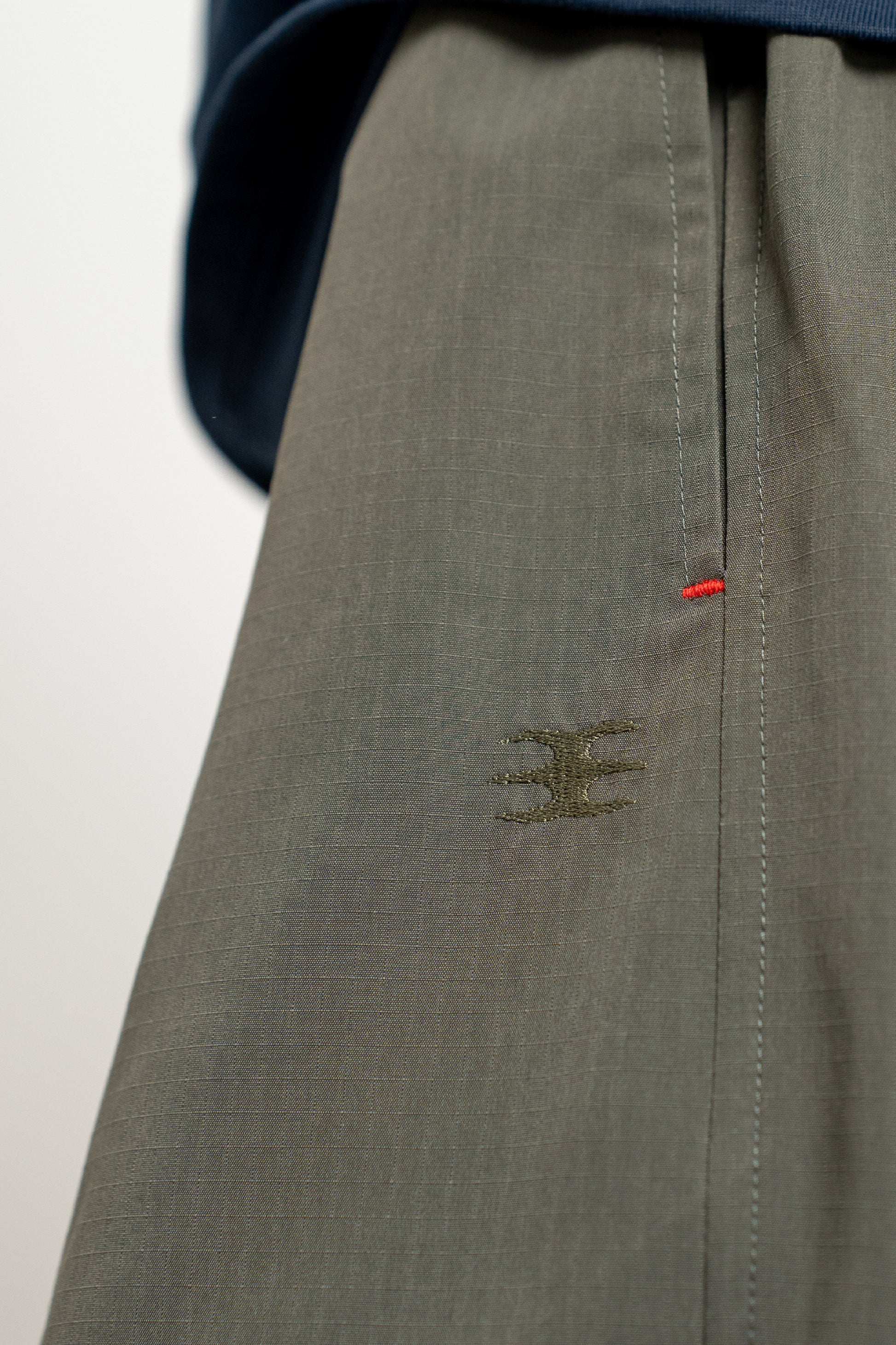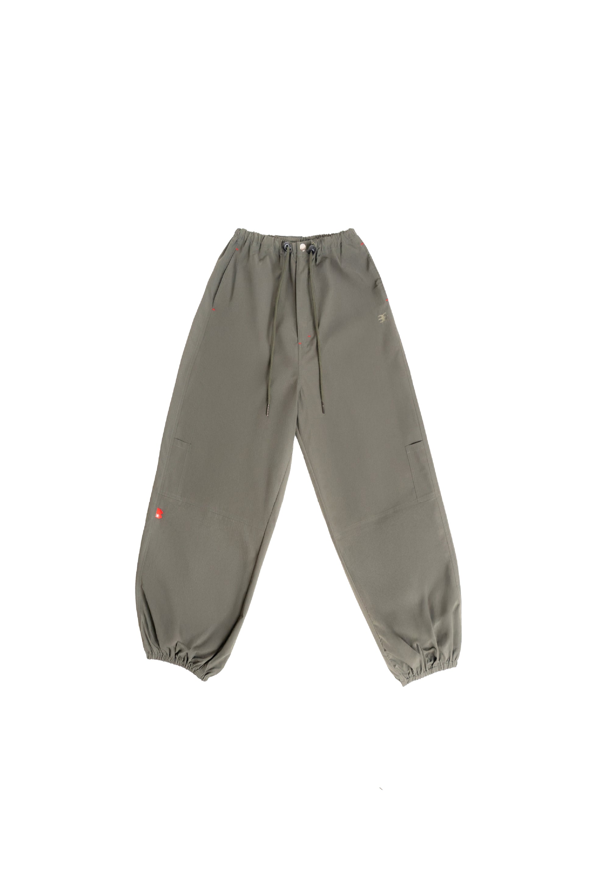 A pair of utility trousers, cut in a relaxed fit with balloon-curved leg design and adjustable waistband.